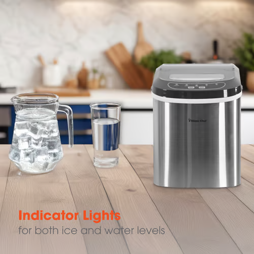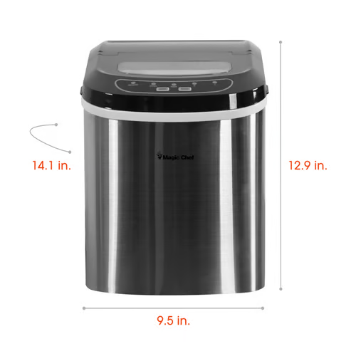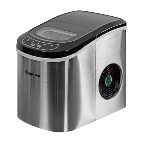 The Magic Chef Portable Countertop Ice Maker can make up to 27 lbs. of ice per day, providing you with a steady supply of ice. It is just what you need to continuously fill your ice bucket or beverage pitchers when you are entertaining friends and family. The ice maker can conveniently hold up to 1.5 lb. of ice at a time, and the digital control panel indicates when the storage bin needs to be emptied. The ice maker produces ice in 2 sizes in as little as 7 minutes. Not only do they provide a simple solution to producing large amounts of ice fast, but the portable ice makers are compact and small enough to fit on your kitchen countertop or patio table.