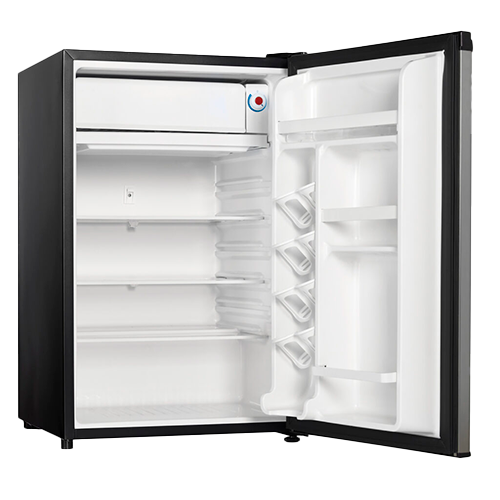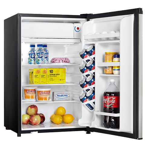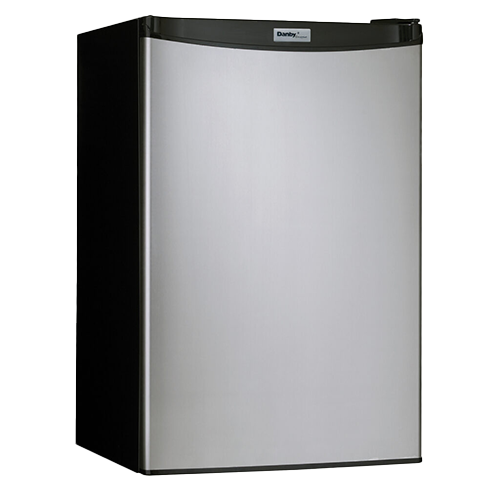 When you require a counter-high refrigerator that offers a large storage area in a compact space, look no further than Danby Designer’s model. This mini fridge provides 4.4 cubic feet (125 L) of refrigeration capacity and is ideal for workshops, dens, rec-rooms, lunchrooms, etc. It’s outfitted with a convenient CanStor® beverage dispenser for your favorite drinks and has enough room for tall bottles. The 2.5-shelf design offers maximum storage versatility, and the appliance is controlled by an accurate mechanical thermostat and a simple semi-automatic defrosting system. If you need to freeze certain types of foods or are simply looking for a place to make and store ice cubes, this appliance meets the requirements, as it also features a full-width independent freezer section. Since this attractive model is also ENERGY STAR® rated, it won’t raise your power bills. This classy compact fridge can be found in white, black, and smudge-free spotless steel finishes, making it suitable for any style of existing décor. In addition, it comes with an integrated door handle with a convenient reversible door hinge for both left and right-handed opening.