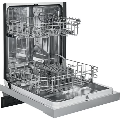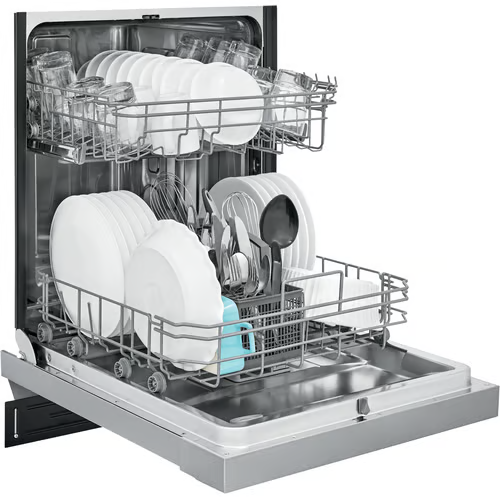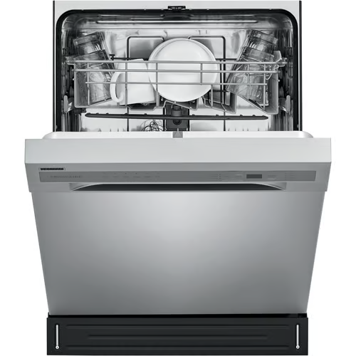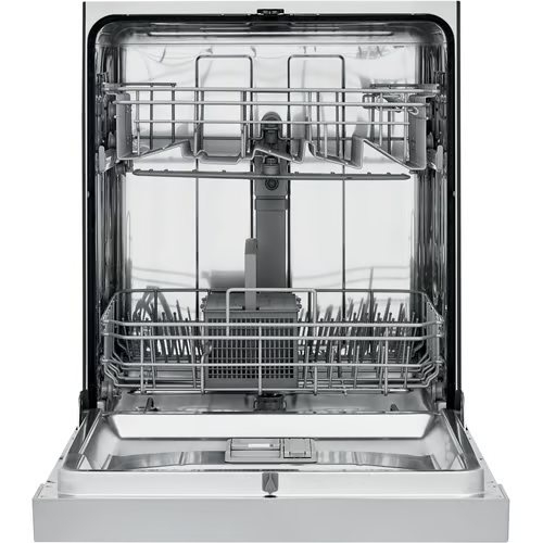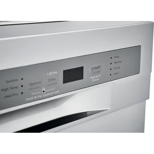 Frigidaire’s dishwasher has a top and bottom rack dual spray arm system that gives you a thorough clean every time. The sanitize cycle removes 99.9% of common household bacteria and is certified by the National Sanitation Foundation. This dishwasher fits and cleans up to 12 place settings in one cycle. The heated drying system helps dry your dishes the first time, and the multiple cleaning options feature easy-to-use cleaning cycle options for your different cleaning needs. This dishwasher maximizes your energy and dollar savings and is Energy Star Certified.