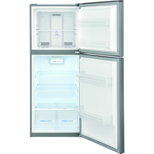 The Frigidaire FFET1022UV 10.1-cu. ft. Top Freezer Apartment-Size Refrigerator features Store-More Humidity-Controlled Crisper Drawers, to keep your fruits and vegetables fresh in our humidity-controlled crisper drawers. SpaceWiseAdjustable Glass Shelving, so you can easily adjust shelves up and down to create more space for taller items. Store-More Door Bins with Gallon Storage, which offer additional storage and organization. Bright LED Lighting, so you can find food faster. As well as electronic temperature controls, allowing you to easily select options with the touch of a button, enabling more precise temperature control than a knob.