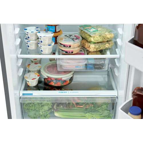 This Frigidaire top freezer refrigerator was designed with a busy family in mind. Enjoy 13.9-cu. ft. of interior space to store all of your favorite foods while staying organized with flexible interior storage. Prevent warm spots and unwanted freezing with our EvenTemp cooling system’s optimized airflow that ensures a consistent temperature throughout your refrigerator. Use the humidity-controlled crisper drawer to keep produce fresher longer. Auto-close doors help you avoid food spoilage and soupy ice cream by ensuring that your refrigerator and freezer doors are never left open accidentally.