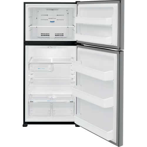 The 18.3 cubic feet of interior storage space is designed with your family in mind. Full-width glass shelving, a sliding half-width deli drawer, and spacious door bins make organization easy. Frigidaire’s EvenTemp cooling system optimizes airflow to keep a consistent temperature throughout your refrigerator by preventing warm spots and unwanted freezing. The Humidity-Controlled Crisper Drawers keep produce fresher longer. The Auto-close doors ensure that your food does not accidentally spoil from an ajar door.